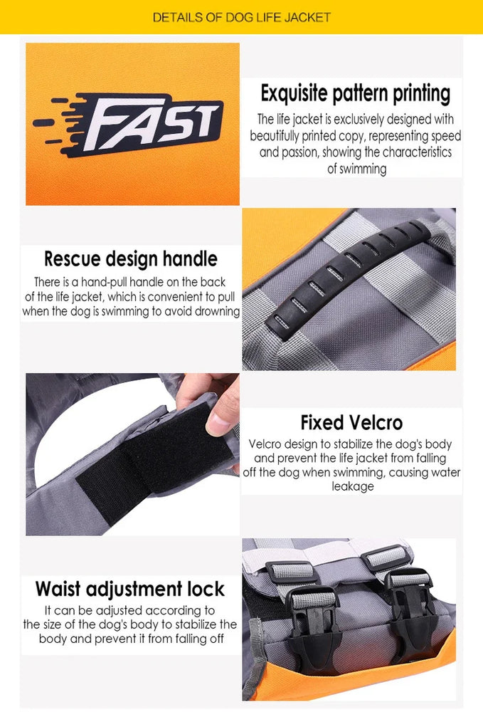 Pet Swimming Jacket Safety Vest Summer Stylish Dog Safety Vest Adjustable Reflection in Pool or Surf Dog Lifesaving Vest
