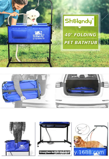 Folding Pet Bath Swim Bathe Bathtub Shower Grooming Outdoor Indoor Elevated Dog Cat Pet Cleaning Products Supplies Accessories