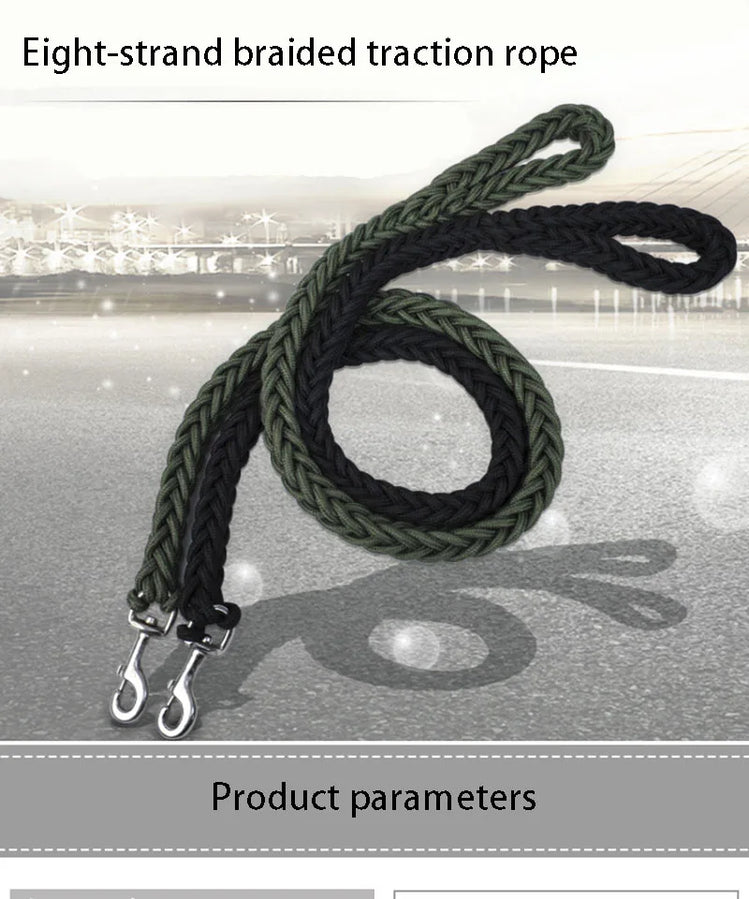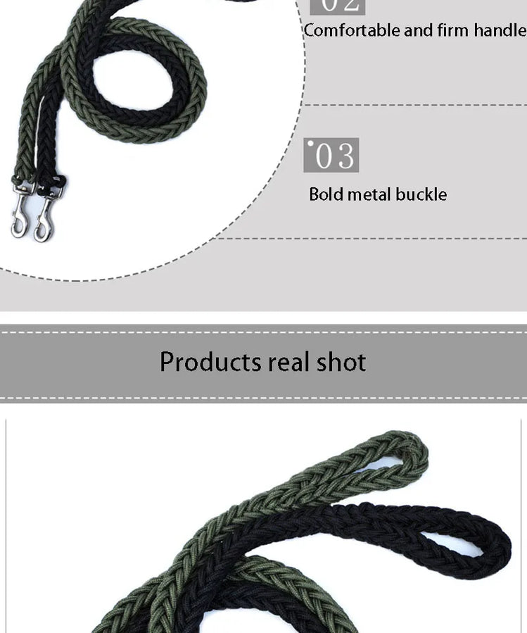Large Dog Leash Traction Rope with Heavy Duty Buckle Hand-knitted Strong Durable Nylon Braided Leashes for Medium Big Dogs Bully