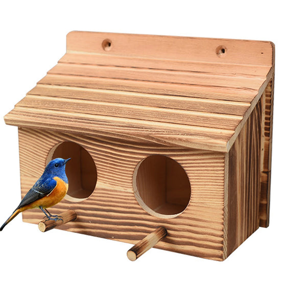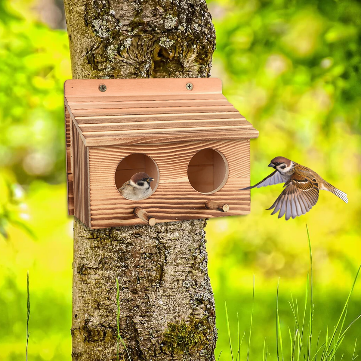 Parrot Cage Wooden Bird House with 2 Holes Creative Hanging Birdhouse Garden Bird NestRoom Handmade Outdoor Bird Nesting Decor