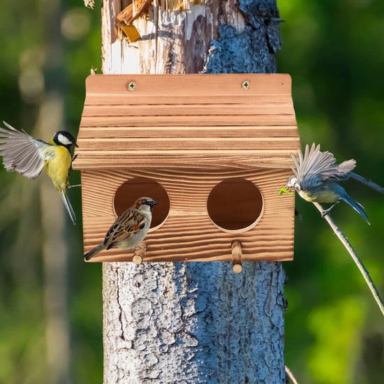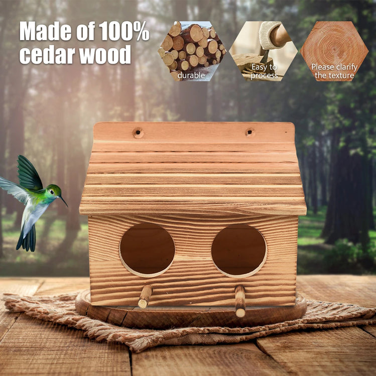 With double hole design, it provides enough space for two birds. The entrance has a diameter of 4.5 cm and there is a platform at the entrance for the birds to stand on so that they can easily enter the house.