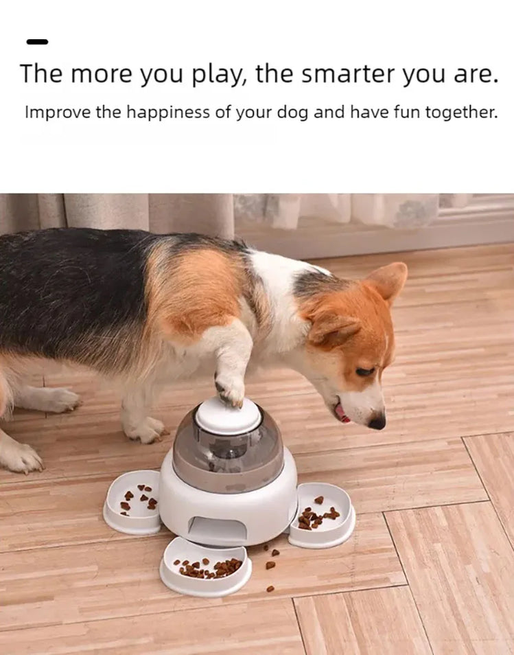 Three bowls of pet food dispenser, automatic press feeder, slow food dispenser, fun pet food utensils